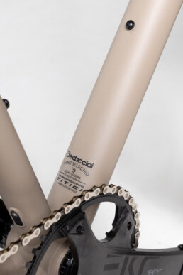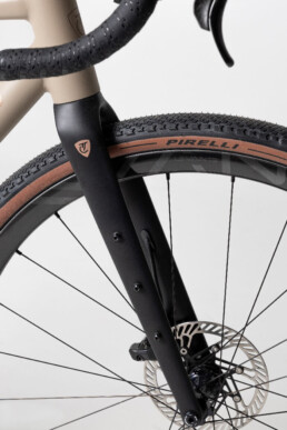 Designed for long off-road adventures, the ALLOI model is optimised in every aspect, from its bikepacking predisposition to the possibility of fitting generously sized tyres, up to 700c x 40 or 650b x 45, and tackling the most extreme trails with full confidence. Sophisticated details make it unique and exclusive: the chiselled and hand-painted Titici logo on the seat stay bridge and on the chainstays, the graphic pattern on the top tube that evokes the magic of dirt roads, the total customisation of the colours. A perfect union of Made in Italy design and innovative functionality that has always been the hallmark of TITICI.