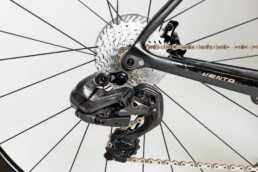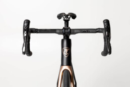 Handmade to measure in Italy, entirely customizable from geometry down to paint job , extraordinarily pleasant to ride: both on the legendary Alpine passes and on the fast stretches on the flat.