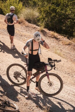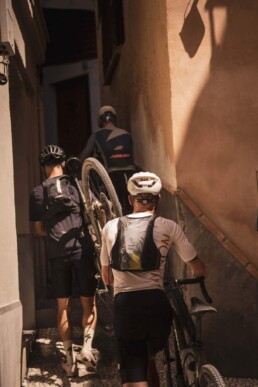 The weather wasn’t much better in the southern Alps. The pattern stayed the same for days. Rideable mornings, rain in the afternoons. The highest top in the challenge, Cime de la Bonette, hadn’t been cleared of snow and Max had to hike the last 300 meters to the top.