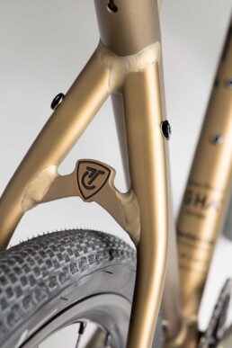 The ALLOI AND frame is realized with the top tube featuring the new PAT.H (Plate Absorber Technology Hydroformed) technology, derived from the patented PAT system available on TITICI carbon frames. The iconic shape with an oval section, which is thinner and flatter, increases the vibration damping capacity while maintaining high resistance and torsional rigidity. The top tube is given this shape through hydroforming, a technique also used in the production of sports cars that exploits the high pressure of liquids to create extremely reliable and resistant tubes. The benefits of PATH.H technology are superior stability and comfort combined with high performance. Vibrations generated by uneven terrain are absorbed by the frame structure and do not reach the rider’s arms, neck and back, the areas typically subjected to the most stress, thus leading to a greater feeling of well-being in the saddle over long distances.