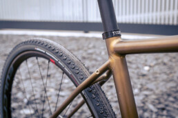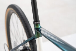 Designed for long off-road adventures, the ALLOI model is optimised in every aspect, from its bikepacking predisposition to the possibility of fitting generously sized tyres, up to 700c x 40 or 650b x 45, and tackling the most extreme trails with full confidence. Sophisticated details make it unique and exclusive: the chiselled and hand-painted Titici logo on the seat stay bridge and on the chainstays, the graphic pattern on the top tube that evokes the magic of dirt roads, the total customisation of the colours. A perfect union of Made in Italy design and innovative functionality that has always been the hallmark of TITICI.