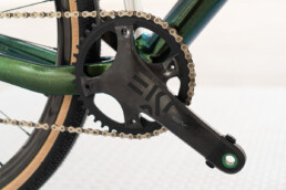 HARD ANODIZATION (thick hard anodic oxidation) aims to give aluminium high resistance to wear and abrasion. This is a transformation of the surface of the crank arm into aluminium oxide and not just a surface coating. As a conversion, the layer that forms penetrates half inside and half grows outside the component, developing regularly over the entire surface of the piece, also giving it rough color and perfectly matches the anodization of the frame.