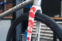 STERRATO GRX LE will be produced in just 12 pieces that will be hand-painted by Milanese street artist and gravel rider Luca Di Maggio, inspired by the motto “Ride TITICI around the world”. The fork of each model evokes a different country in the world, referring to the main cultural stylistic features. The first model is dedicated to Japan: Mount Fuji, the Rising Sun, the bonsai plant and the lotus flower stand out in red on a white background – the national colours.