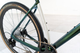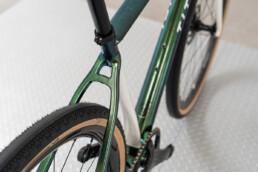 Compared to the F-GR02, the RELLI’s rear end has also been completely redesigned. Lowered seat stays (the junction with the seat tube is 30 millimetres lower than the top tube) provide greater stability on dirt roads and high responsiveness. The rear triangle and the fork are designed to accommodate wide tyres, up to 700x42c, without annoying mud accumulation.
