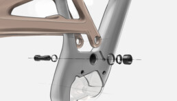 The swingarm rotates around the main pivot, the only fulcrum on which all the forces are concentrated: the impacts from the terrain and the chain drive forces. We at TITICI are the first to use a tapered bearing system derived from the headset structure to make the main pivot even stronger and more efficient.