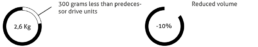 2.6 kg total weight (300 grams less than predecessor drive units)